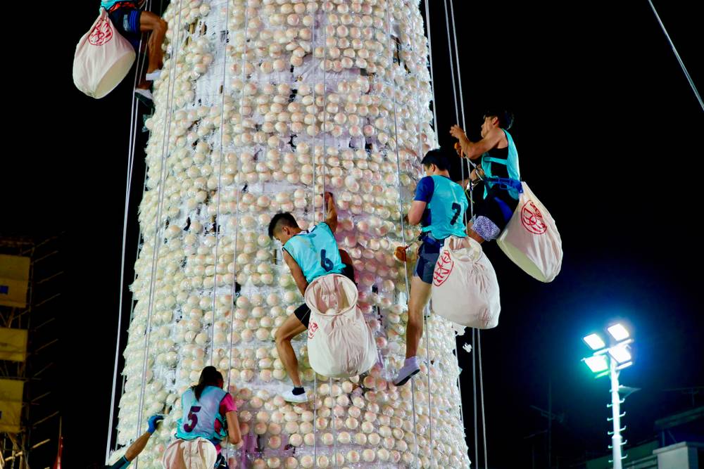 搶包山 (Bun Scrambling): 原本是祭祀後居民搶奪祭祀用的平安包,祈求平安。1978年曾因包山倒塌意外而停辦,至2005年才以現代競技比賽形式復辦,參賽者需攀爬由仿製包子覆蓋的包山架。